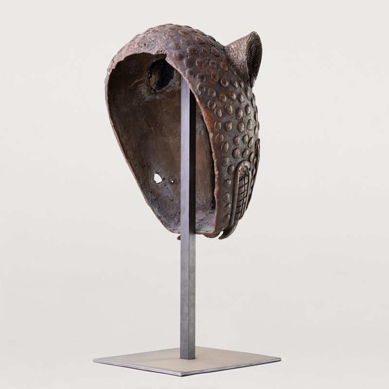 БРОНЗОВЫЙ БЮСТ ЛЕОПАРДА LEOPARD BRONZE HEAD WITH STAND 2 BENIN